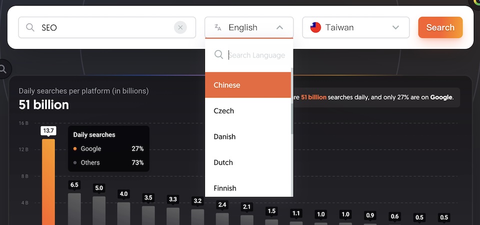 舉例輸入「SEO」後,會看到: