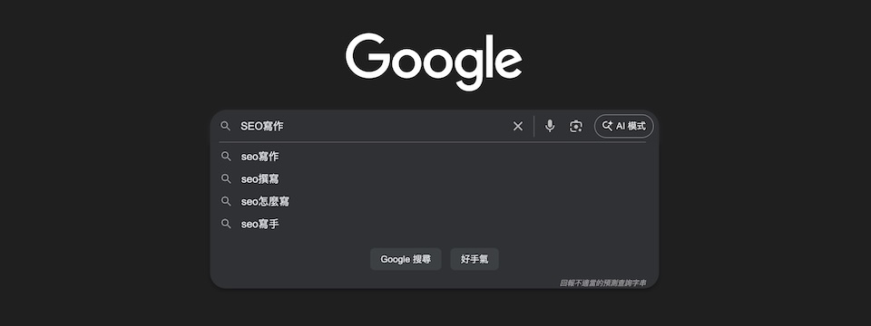 在 Google 搜尋框輸入,例如「SEO 寫作」,