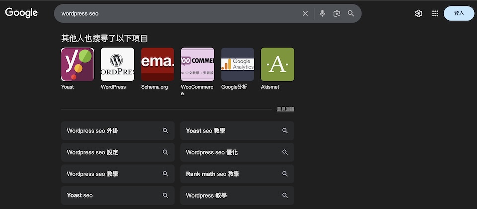 在搜尋框輸入,例如「Wordpress SEO」後,